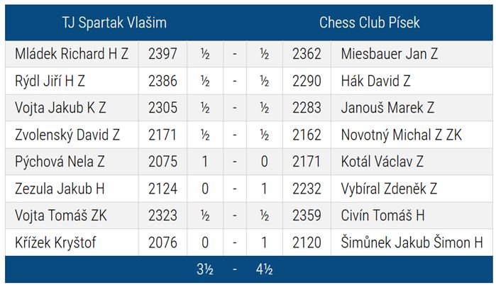 Remis o půl čtvrté a konečný výsledek 4,5-3,5 pro Písek.