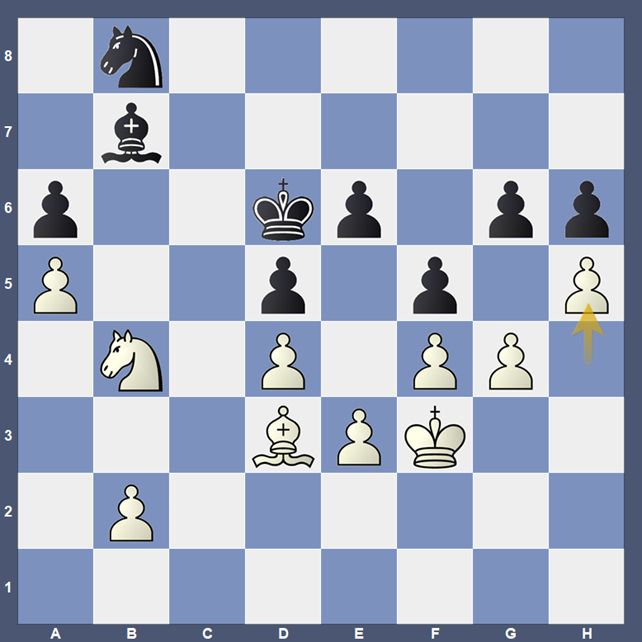 Po tahu 46. …-h5 se černý vzdal. Pozice se otevře a černému obě jeho lehké figury nestihnou záchranu pozice na královském křídle. (a6 je slabina jako víno)